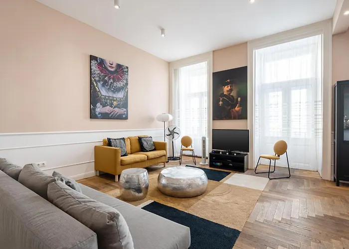 Er is de Hongaarse Opera op een paar minuten lopen van dit appartement van 110 m² en de thermen van Gellért ligt op 2 km afstand. Op 10 minuten autorijden van dit 1-badkamer appartement vindt u het Városliget.